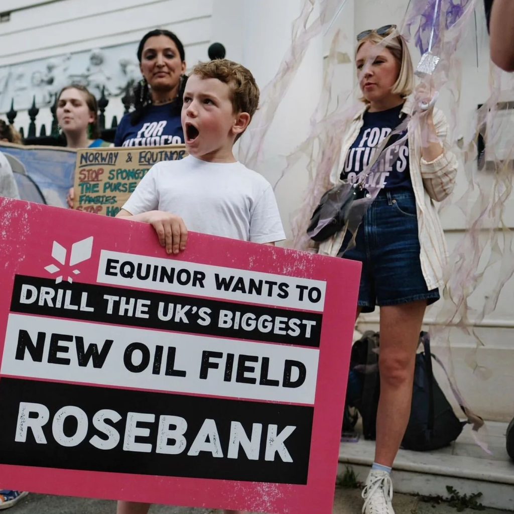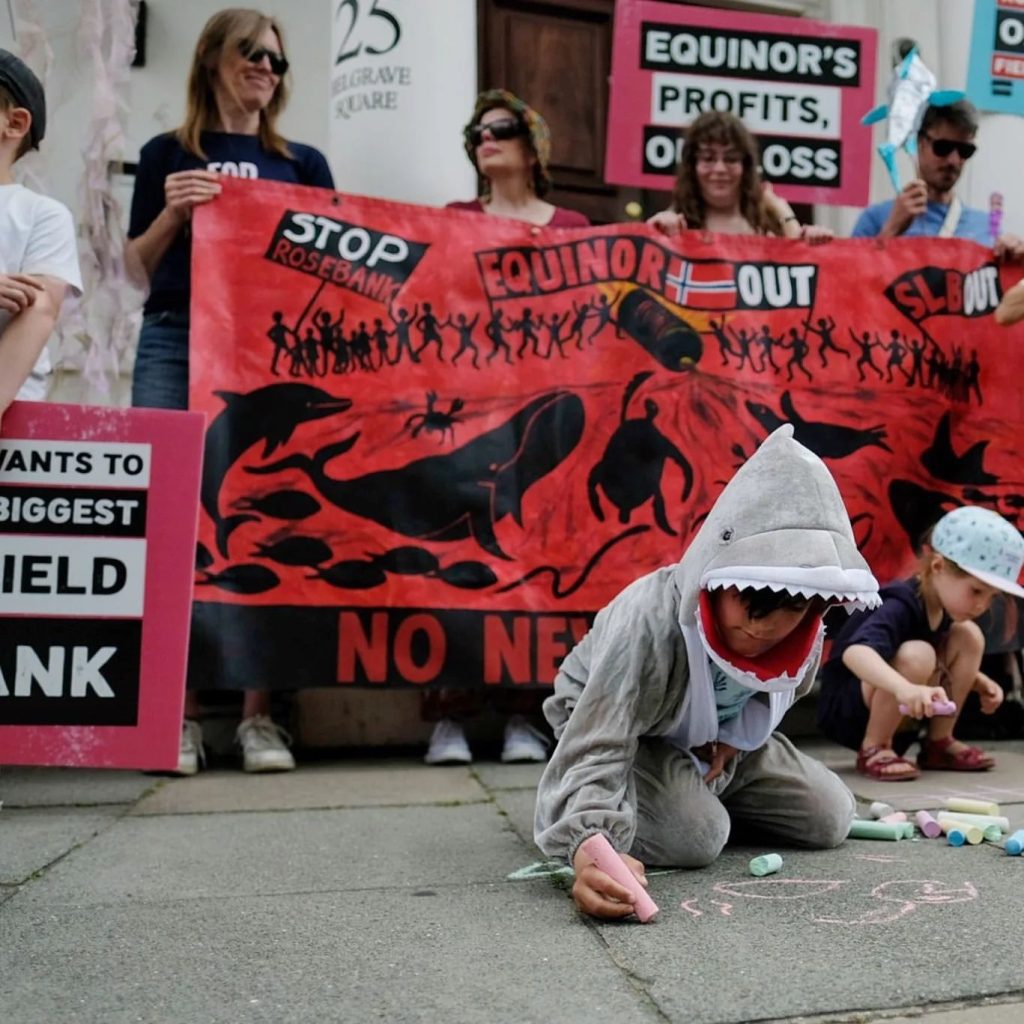 • Distributed information about Rosebank and supported creative non-disruptive protests aimed at the UK government, the Norwegian Embassy and Equinor